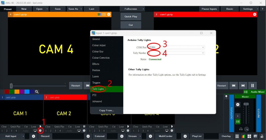 SS Wireless Tally control支援vMix Tally 的原生標準控制,無須驅動程式,即插即用,只要插上USB到電腦上,依據電腦指派的COM Port號碼直接選擇即可指定Tally 燈號。
